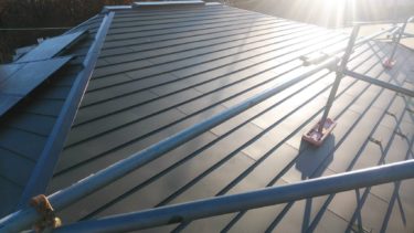 築20年のお住まいの屋根のリフォーム工事を行いました。屋根材に大きな割れなどはありませんでしたが、小さな欠けやクラックがありましたので、補修してから施工します。