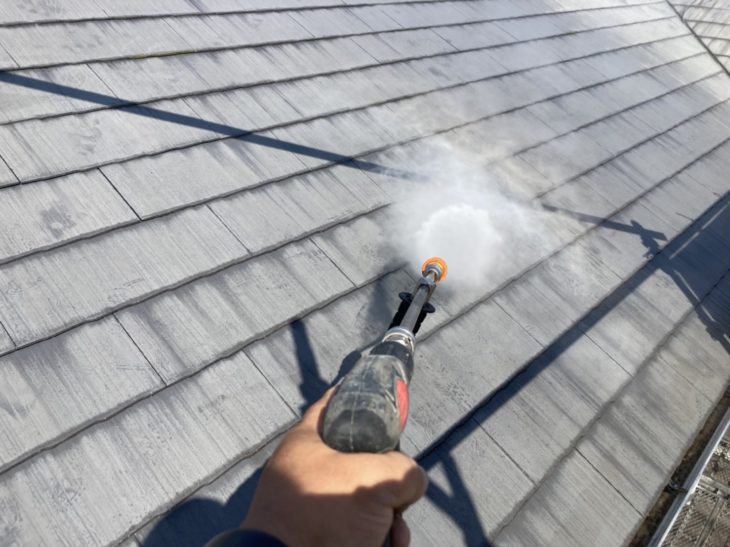 バイオを用いて高圧洗浄をします。表面の汚れだけではなく、カビやコケの根っこごと洗い流します。