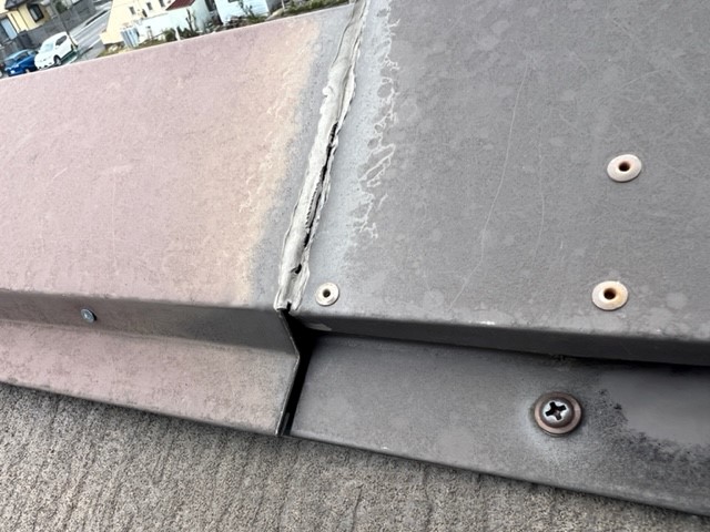 棟板金等は、コーキングが劣化したり留めつけている釘に浮きが見られ、板金自体が浮いてきたりします。