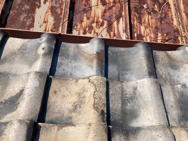 和瓦屋根の点検 棟瓦がずれ今にも崩れ落ちそう…