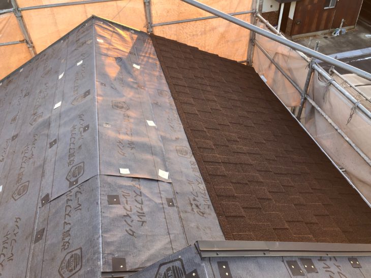 ルーフィング(防水紙)を張ります。