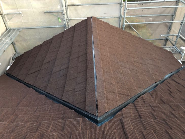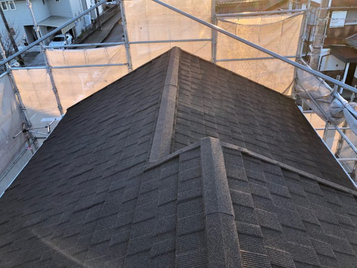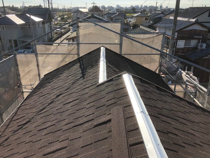 棟板金を取り付けます。施工後