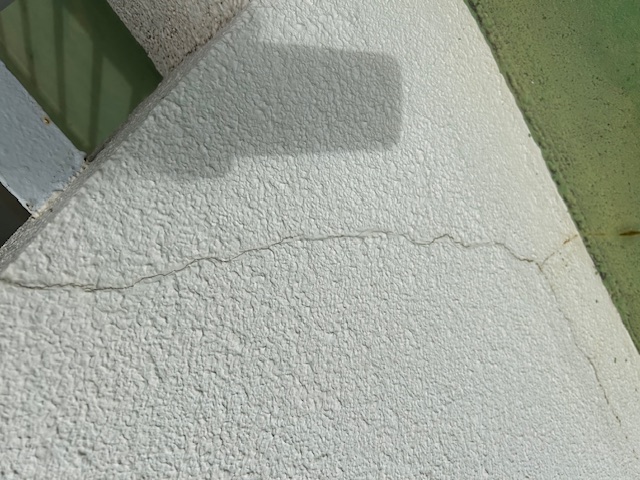 まだ雨漏りは起こっていないとの事でしたが、ベランダ床にしっかりと亀裂が入っているので、放置すると今後雨漏りが起こる確率は高いです。