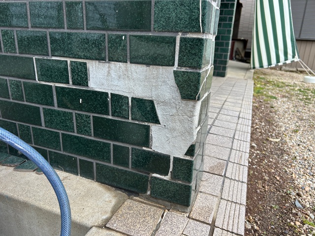 外壁にもひび割れやタイルのはがれが見られました。