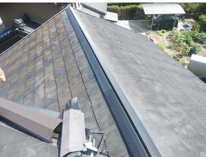 腐食していた下地と棟板金の交換が完了です。
