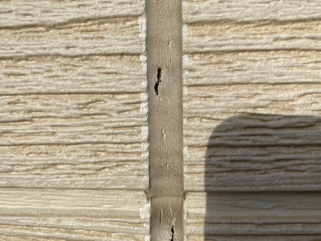 コーキングが劣化すると隙間ができます。このように隙間ができたり、コーキングがなくなるとその箇所から雨水が侵入し、外壁材の下地を伝って室内への雨漏りが発生します。