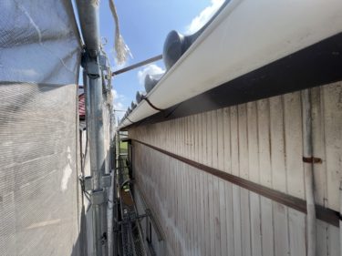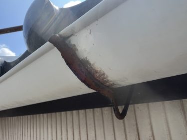 軒樋から雨水があふれている状態を指します。