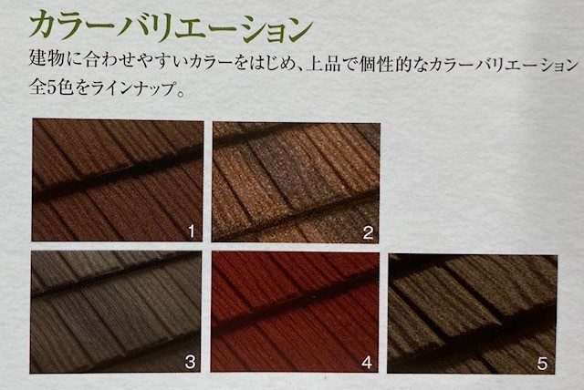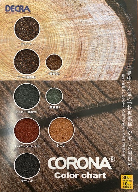 美しい杉板模様のコロナは天然石とガルバリウム鋼板の屋根材です。
