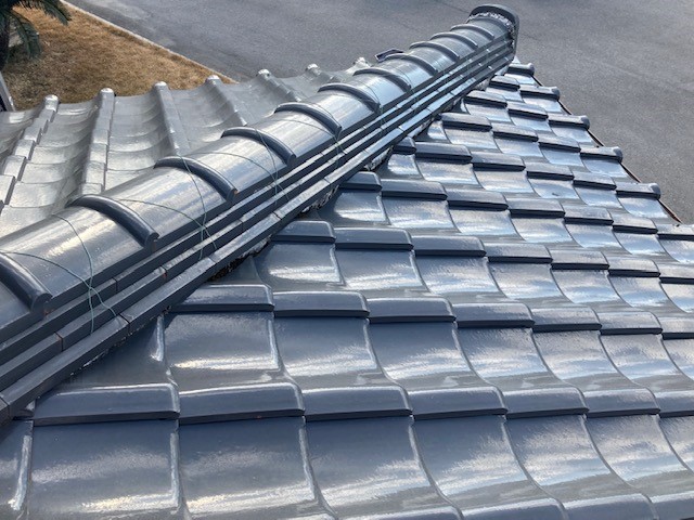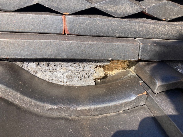 漆喰には瓦と瓦の隙間を埋めるコーキング材のような役割と、瓦の下には瓦がすべり落ちないように「葺き土」を敷いていますが、この葺き土を雨から守るのも漆喰の役割です。