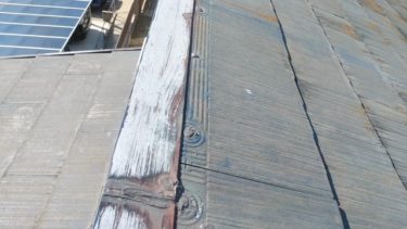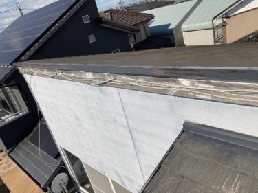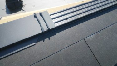 そこに片棟板金を施工します。ジョイント部にも雨水が吹き込んでも大丈夫なようにコーキングを打ちます。