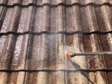 西尾市M様邸 モニエル瓦の塗装を行います!初日は屋根の洗浄で下地処理を入念に。
