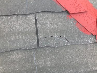 割れが発生していました。このままでは、雨漏りになる可能性があります。割れが広がったりしないうちに早めに直していきます。
