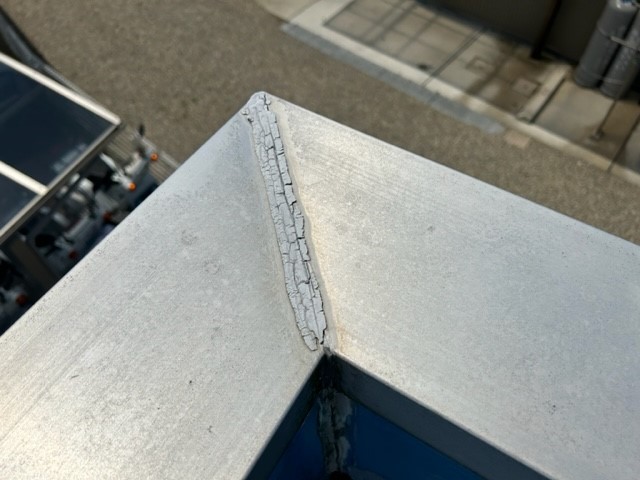 笠木部分や立ち上がり部分のつなぎ目のところにコーキング処理がされています。このコーキングが劣化するとつなぎ目から雨水が侵入してしまいます。