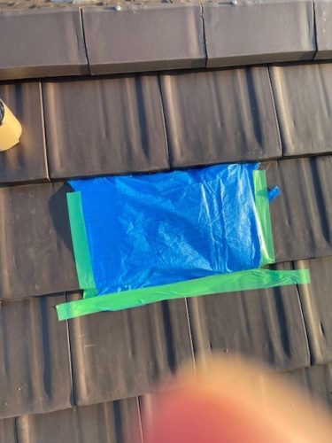 差し替え用の瓦が届くまではこれで雨水の侵入をブロックします。