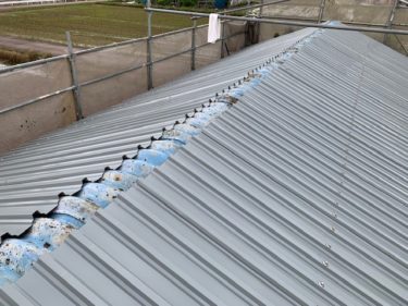 既存屋根の劣化が激しく、塗装か張り替えかカバー工事で検討されていました。