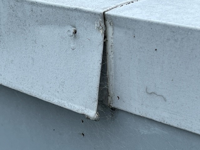 笠木の接続部にコーキングが見られましたが、こちらも劣化していました。笠木部分は少しサビの発生も見られました。