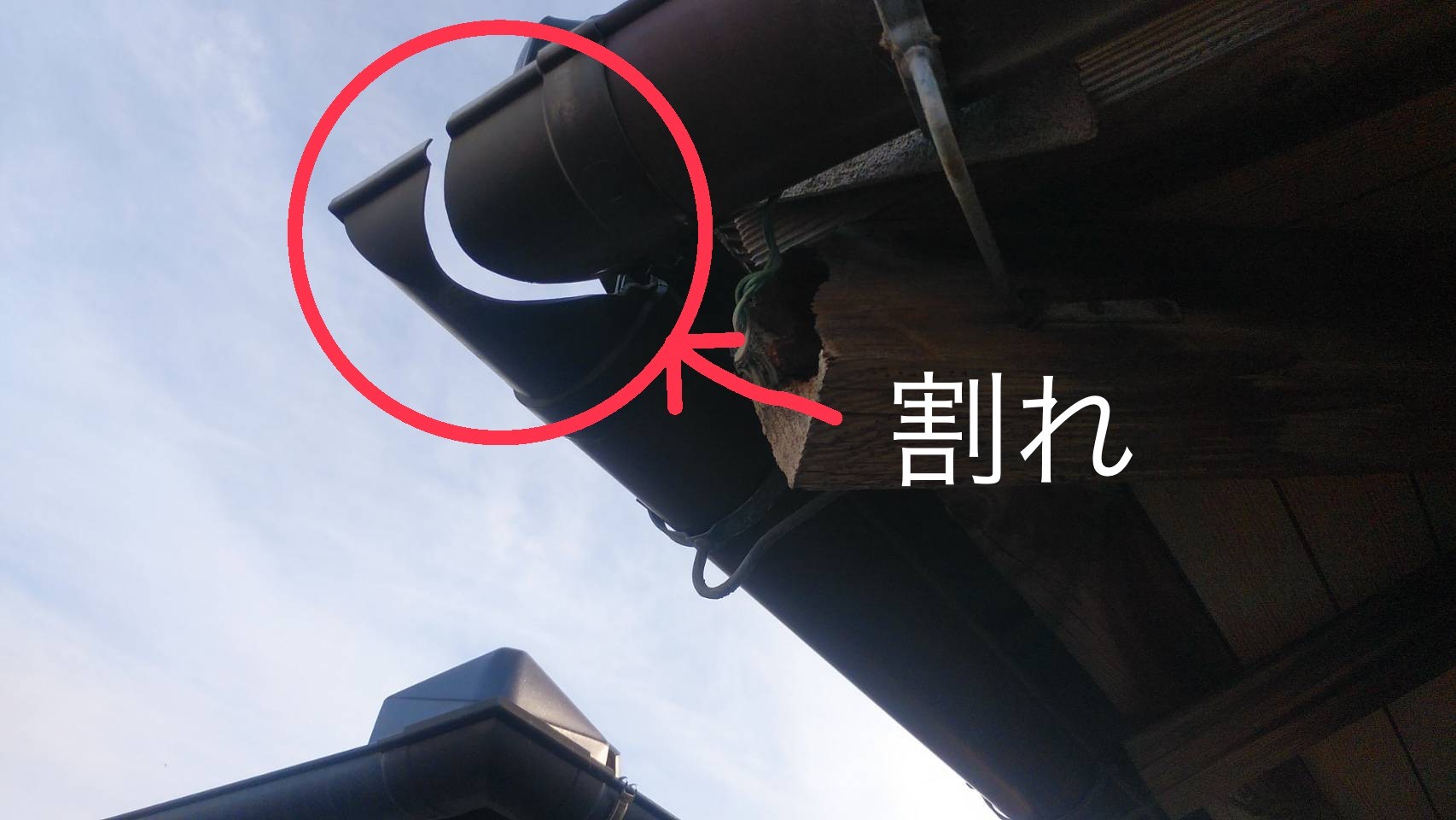 軒樋と言って、屋根の雨水を受ける樋に割れているところがありました。