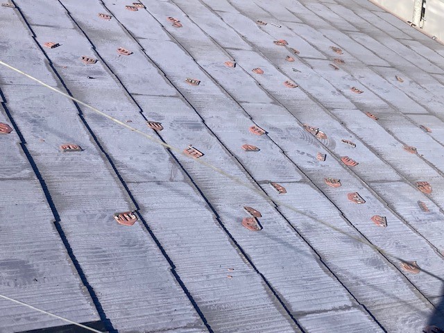 こんな感じですべて外し終わりました。タスペーサーは、屋根塗装の際に必要ですがカバー工法の際は必要ないので外します。