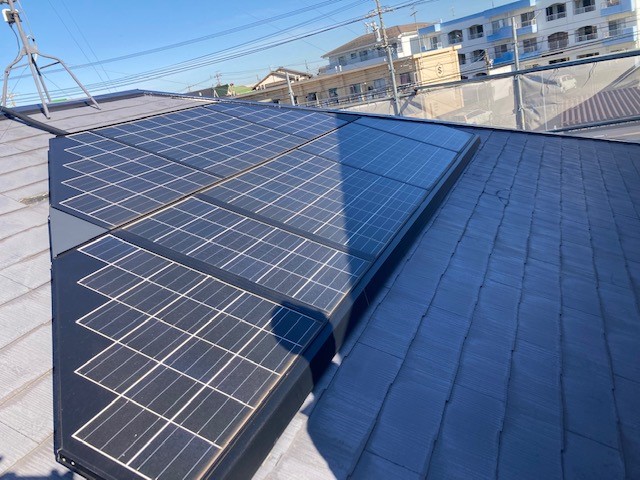 太陽光パネルが乗っているお家の屋根は、手の届く範囲でパネルの下まで施工します。
