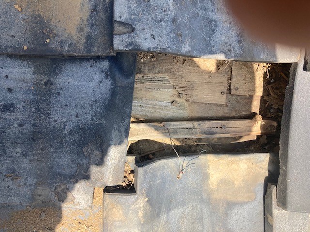 屋根を上ってみてみると、瓦が半分ほど割れていました。さらに、めくってみると土が半分ほど削れていました。