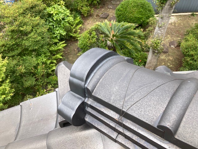 鬼瓦部分のコーキングが傷んでいました。