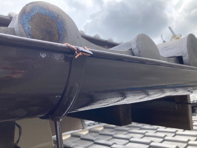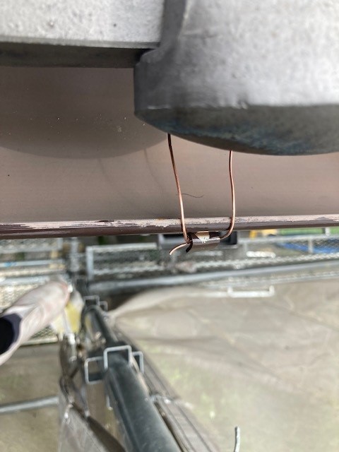 雨樋の外側の引っかかる部分にひっかけ瓦のほうに持ってきて固定をします。施工後