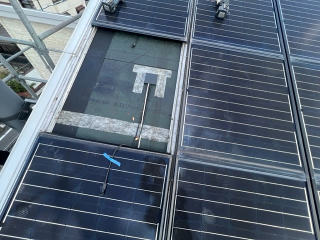 太陽光パネルを直したついでに板金を留めている釘に浮きが見られたので沈めてきました。年数が経つとだんだん釘が浮いてきてしまいます。そうすると屋根材と板金の間に隙間が出てきてしまうので、今のうちに抑えておくことが大切です。