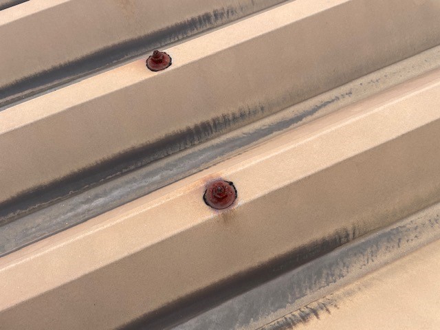 屋根を止めているボルトはサビて浮いてきてしまいます。ボルトも鉄部なのでさびはもちろんのこと緩みます。