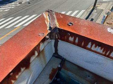 折半屋根の、取り合いのコーキングの切れ・隙間などからの