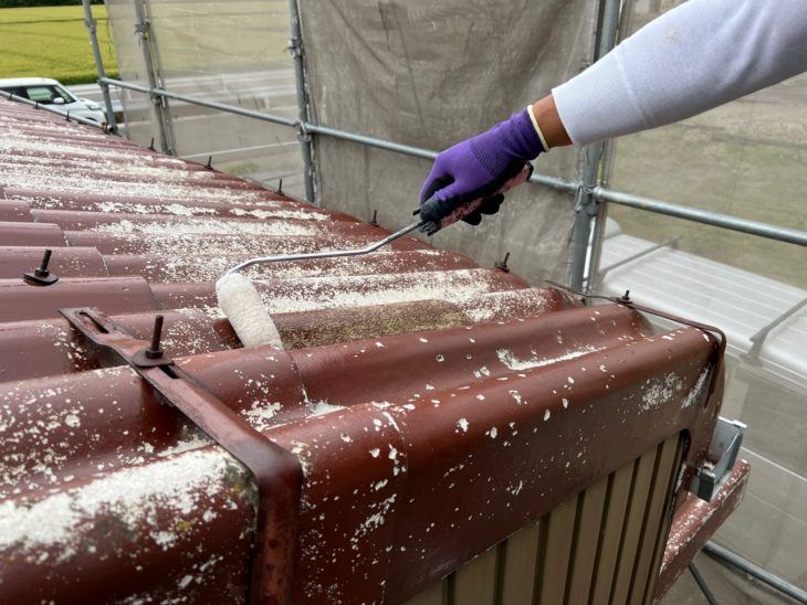 中塗りはルーフガードネオMUKIという塗料を用いて塗装をします。