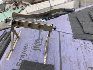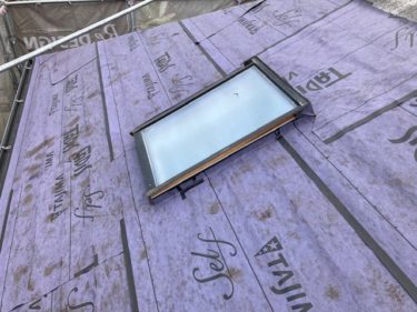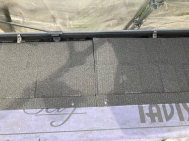 接着ルーフィングは、防水機能もあり、二次防水の役割を果たしています。いよいよ次は、セネターを貼っていきます。