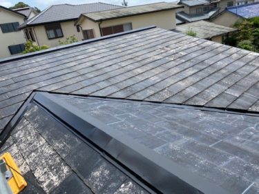 大屋根も下屋も色あせや汚れがひどく、下屋からは雨漏りがありました。