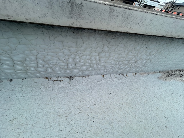 ↑こちらはFRPの防水層です。かなり劣化が進み、ひび割れが目立ちますね。