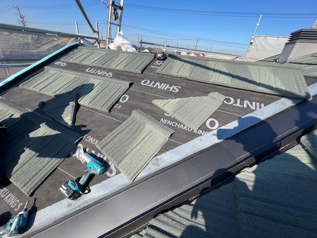 あんじょう屋根守りレスキュー隊による施工中の様子