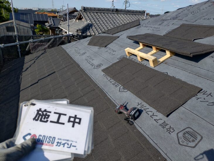 あんじょう屋根守りレスキュー隊による施工中の様子