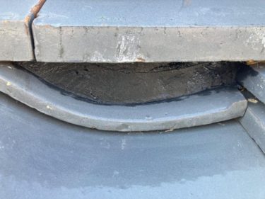 鬼瓦付近に漆喰とコーキングで補修 のし瓦のもろくなった土も新しい漆喰に交換 目地にコーキング補修 |